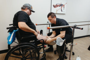 After Joe was discharged from MidAmerica Rehabilitation Hospital, Keaton cast him and fitted him with his first prosthesis in mid-2024. Joe returned to MidAmerica for inpatient therapy to learn to walk with his new prosthetic leg. By all accounts, he was doing remarkably well.
