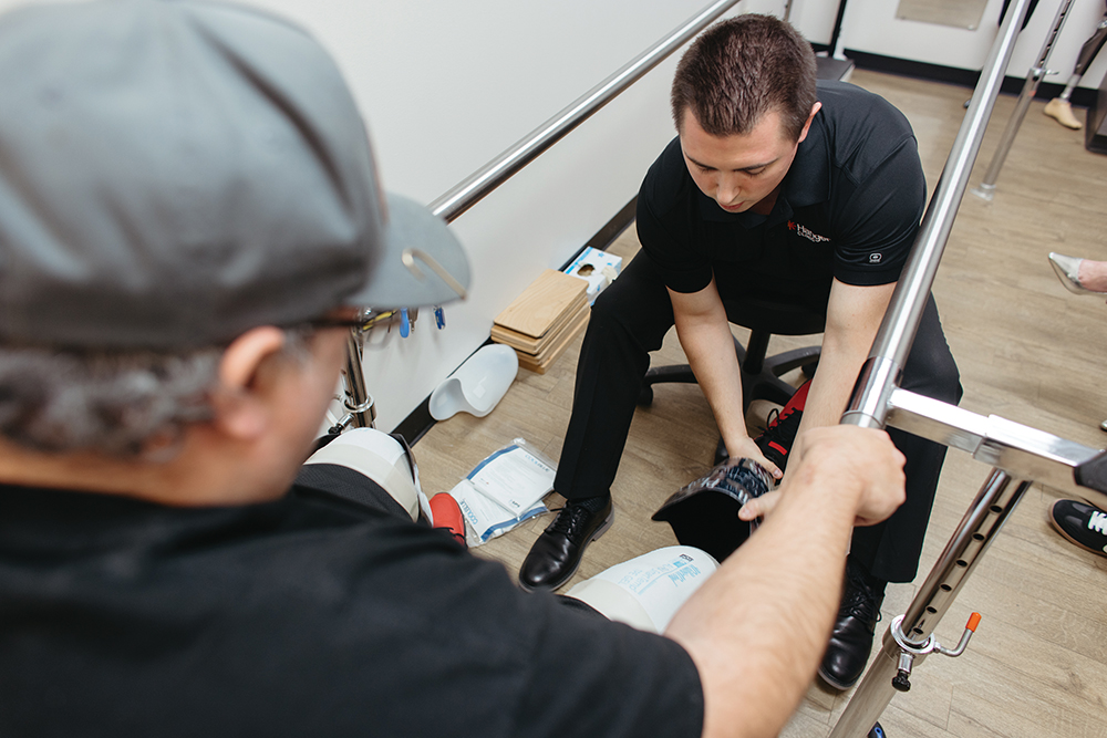 At that initial meeting, Joe’s situation was complex. He needed a prosthesis for his left leg, but his right leg also required support, specifically an AFO (ankle-foot orthosis).